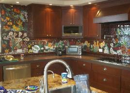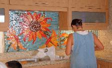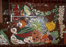 | Custom Back Splashes and Bathroom Installations A Broken Art Produces Custom back Splashes to Order. Projects can be Mounted on Mesh and Shipped World Wide |